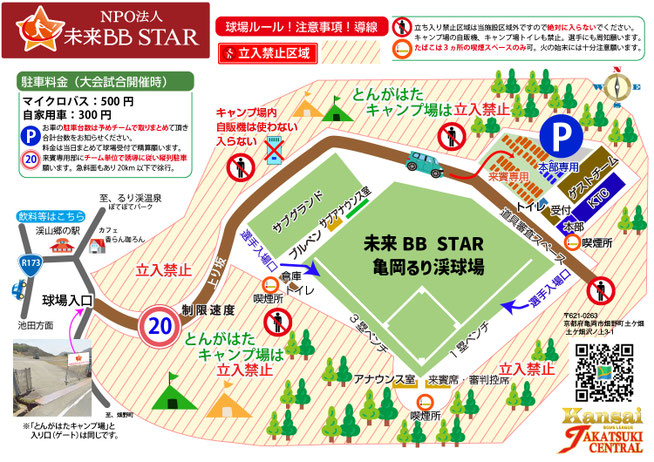 ★ 未来BB STAR 亀岡るり渓球場、来場の際の注意事項 来場導線について ご来場の方はダウンロードされ注意事項等を確認されてください。 |